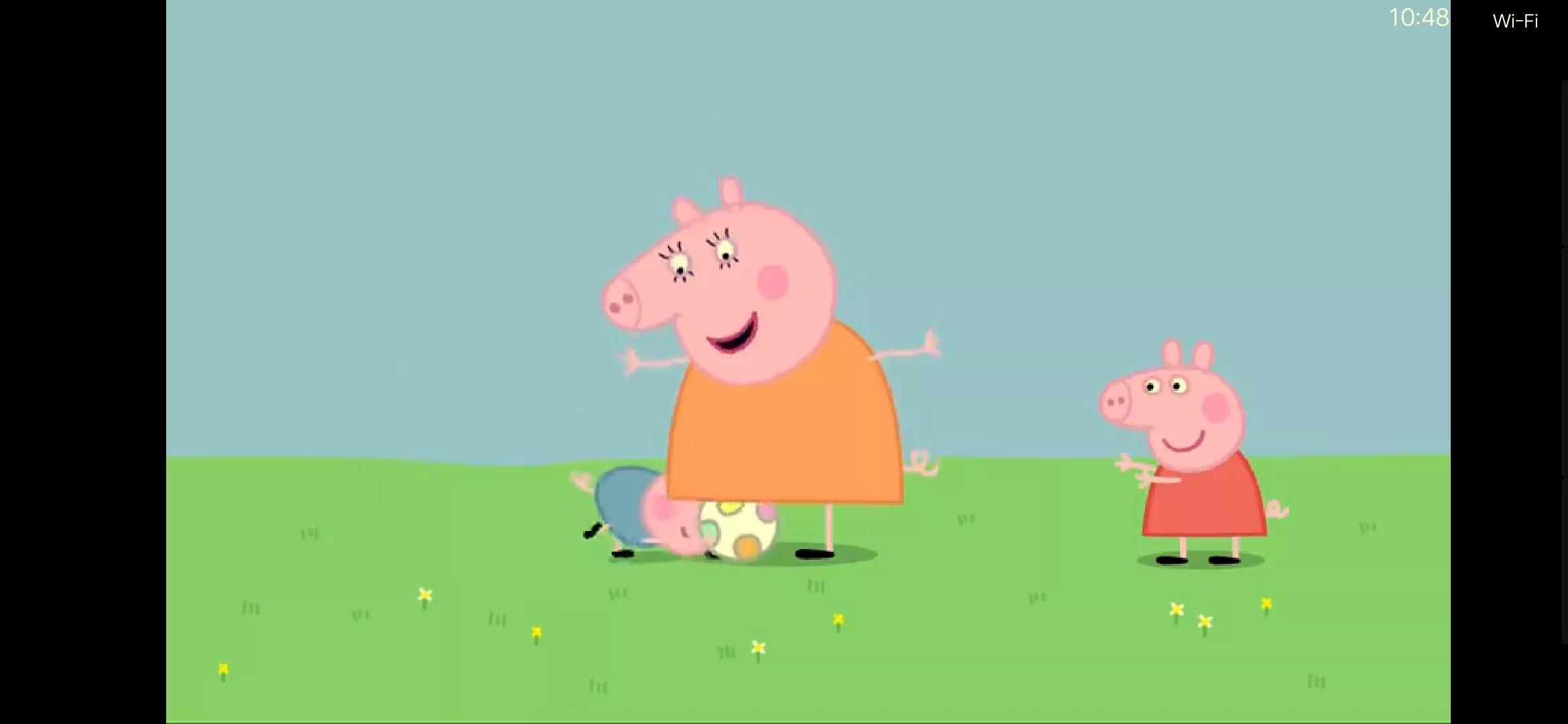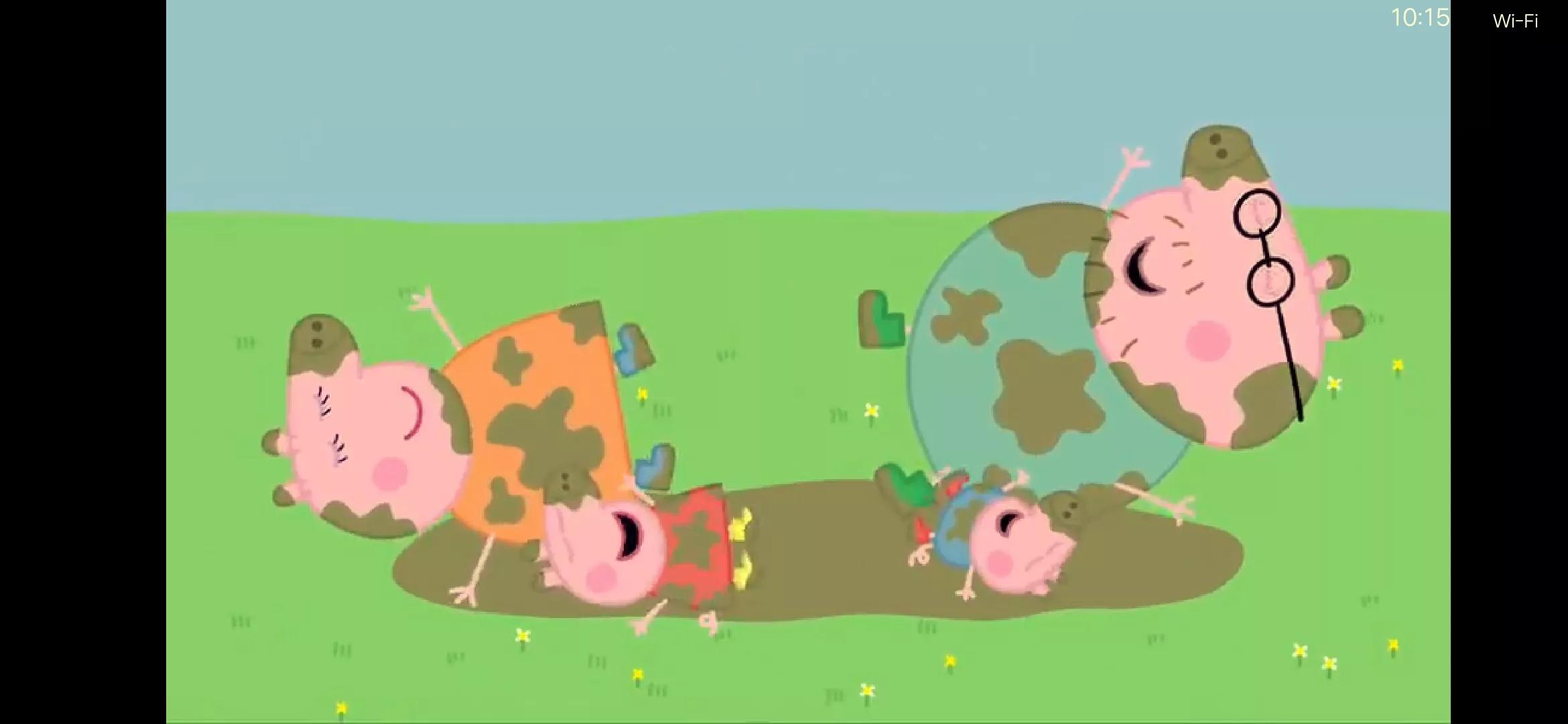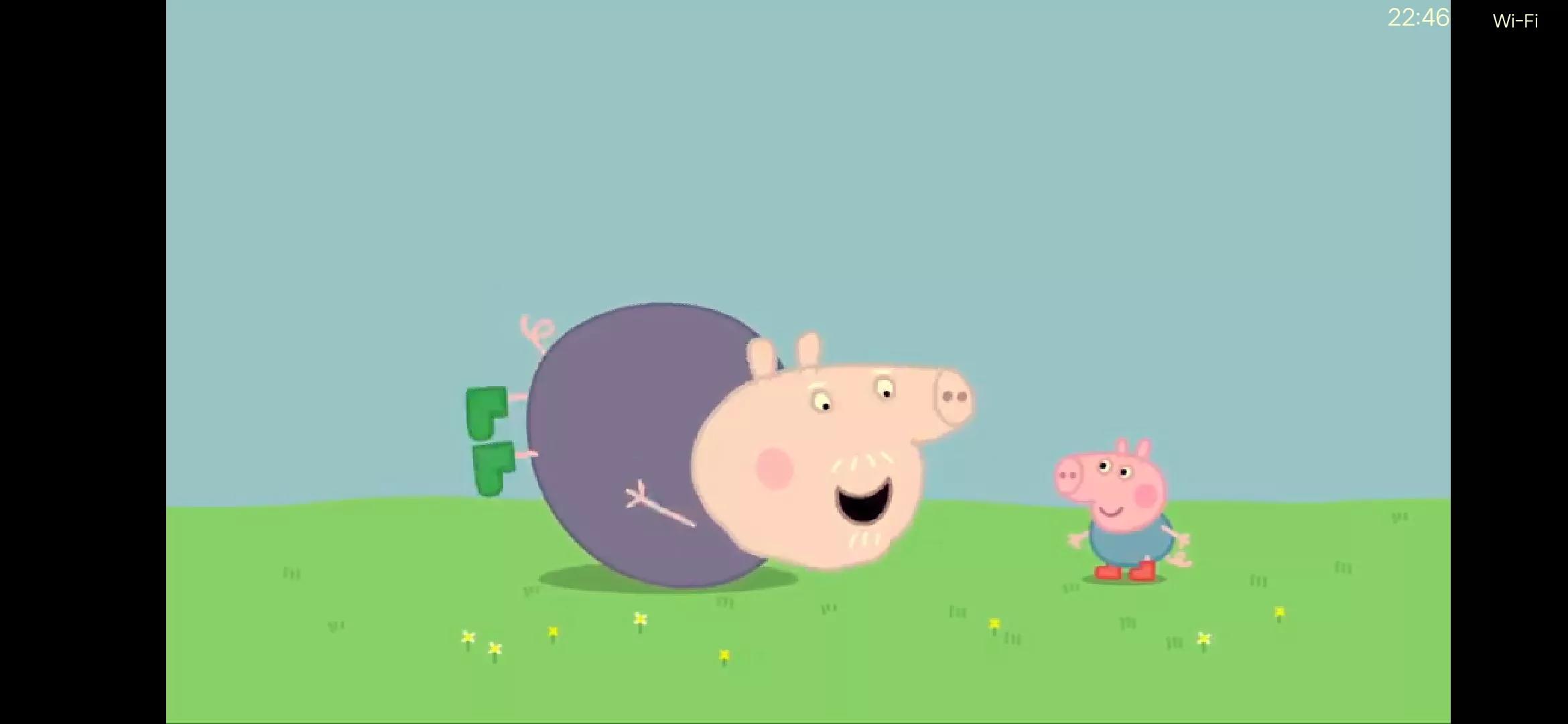比如,游戏中间这集。佩奇不给乔治玩皮球,乔治太小也捧不起来,猪妈妈就在中间调停,让姐弟俩通过自己传球,结果乔治扔不上去,就带着球从妈妈的腿中间钻过去。是不是挺惊喜?
