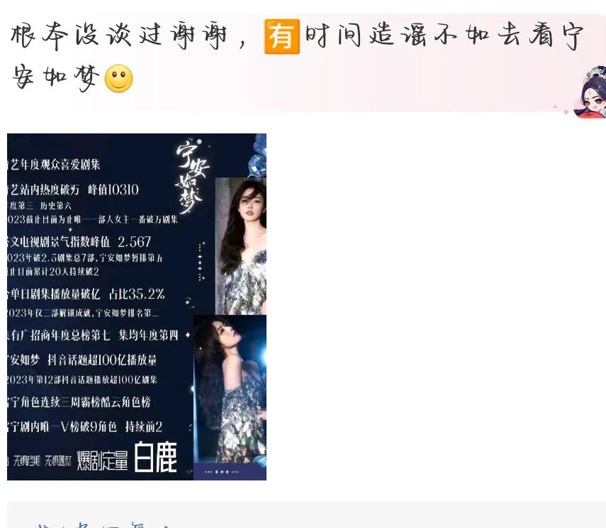根本没谈过谢谢,有时间造谣不如去看宁安如梦。