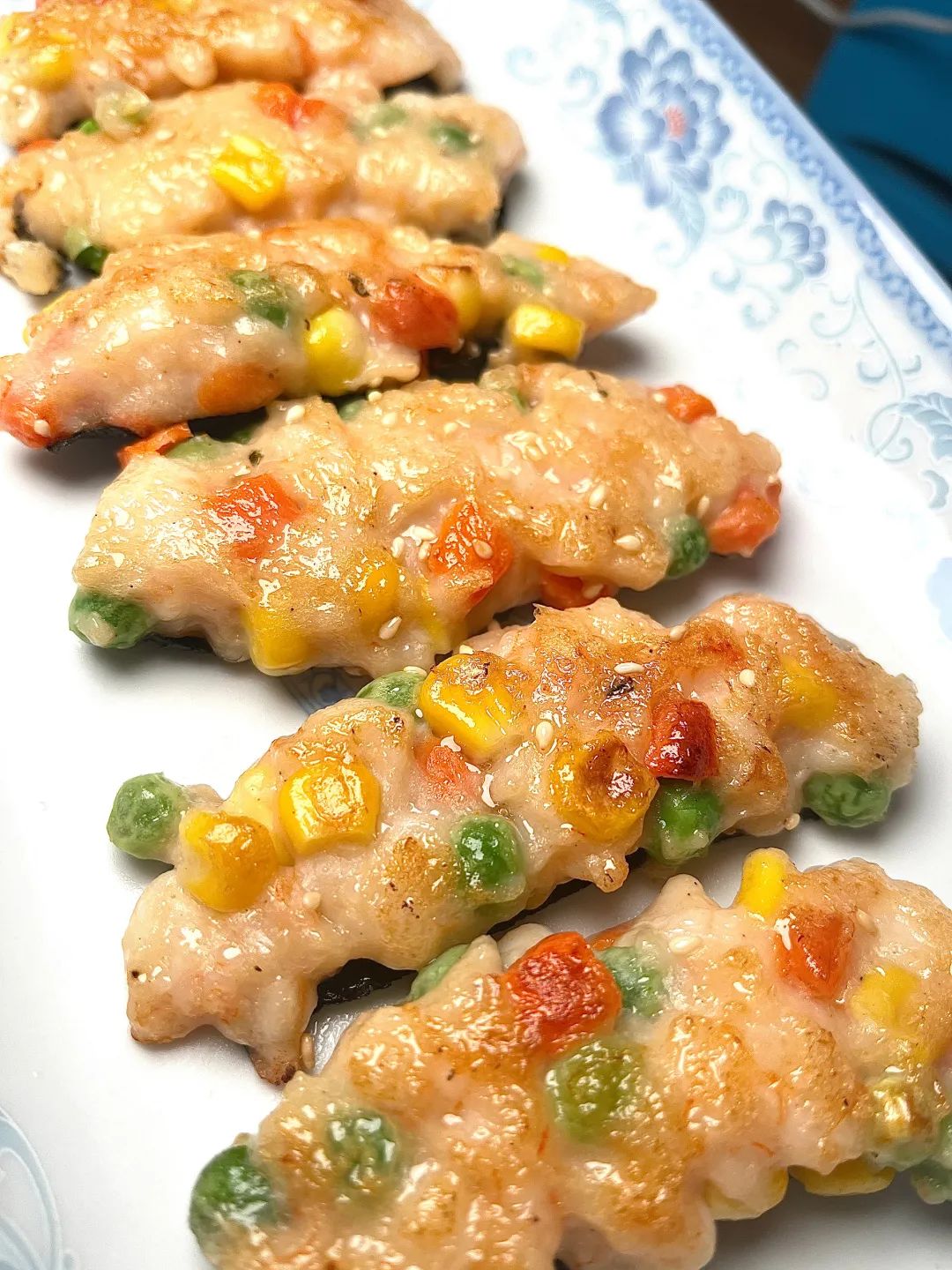 鲜嫩多汁,味道好极了👍👍家里没有胡萝卜了,只放了玉米粒和葱花。