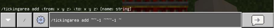 然后站在这个命令方块的上方,在聊天栏输入指令/tickingarea add ~~-1 ~~~-1 ~
