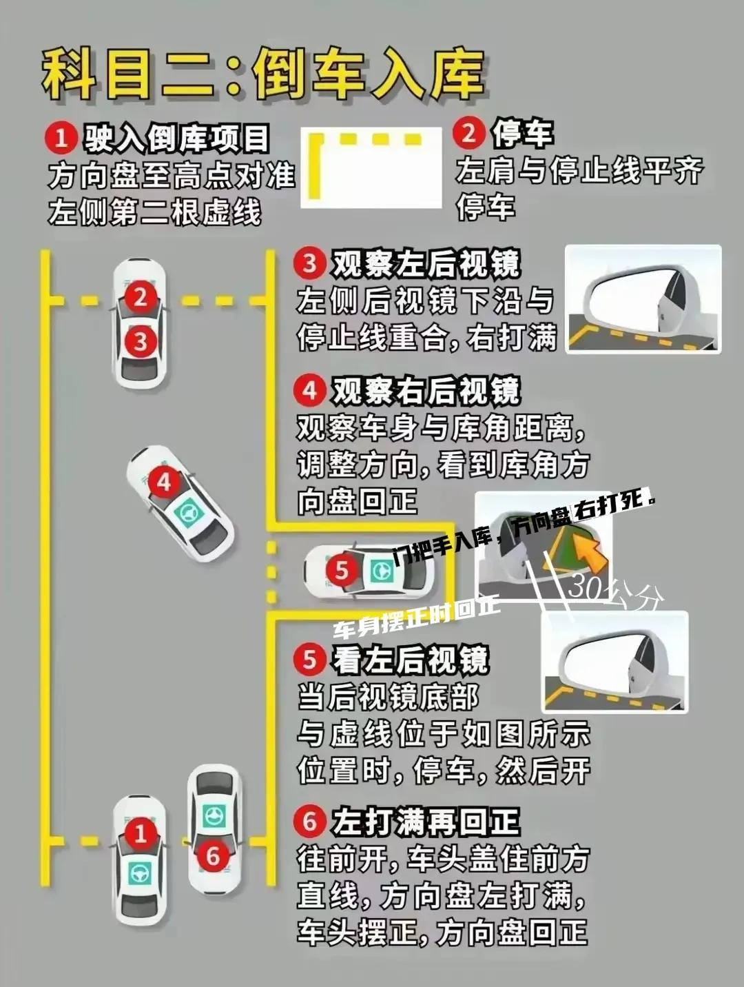 倒库入库是挂科的重灾区,号称绝情库。30公分万能入库法,其关键环节就是"两打死,两回正″,易学易记,是最受欢迎的入库方案。