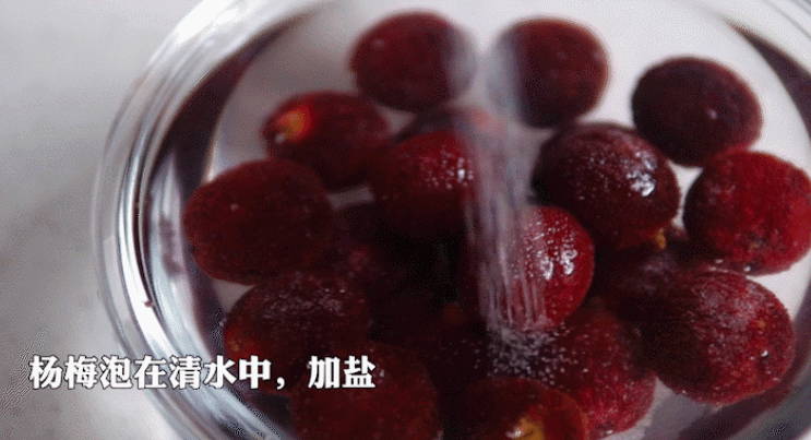 杨梅20颗、荔枝10颗、柠檬半个、冰糖30克、食盐少许