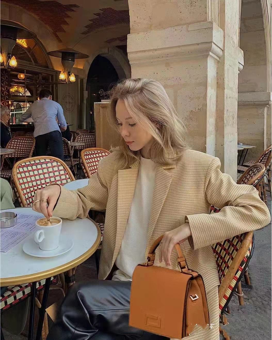 选择款式比较硬朗的西装外套,对于突出造型高级感,渲染度非常高。质感比较高的西装外套精致又大方,尤其是纯色设计款,更巧妙融合了简约风尚以及酷拽范儿,内搭与下装都能与之完美融合,相当洋气。对于需要通勤的女性来讲,是初秋穿搭必备单品。