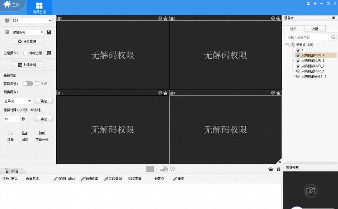 DSS7016S2-D在配合解码器使用时,客户端进行上墙操作,可能会遇到无解码权限的情况,如下图所示: