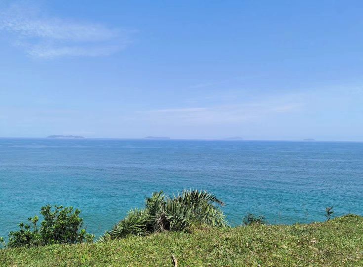 偶尔在网上刷到这个地方。海陵岛的最东端。估计只有野钓讨海的当地人涉足过。车开到东岛沙滩,继续往山上开,走完水泥小路还有一段2.6公里的非铺装小路,这段路也许不需要武装到牙齿的硬派越野,但绝对需要过硬的技术和胆量。车停在海边悬崖上,下到沙滩还有一段登山路,虽然看得我牙根都酸了,但难不倒大宝小宝。4月的山坡上,有稔子花,野菠萝,山姜,野牡丹。。。更有一整片盛开金银花,香气弥漫着整个海湾
