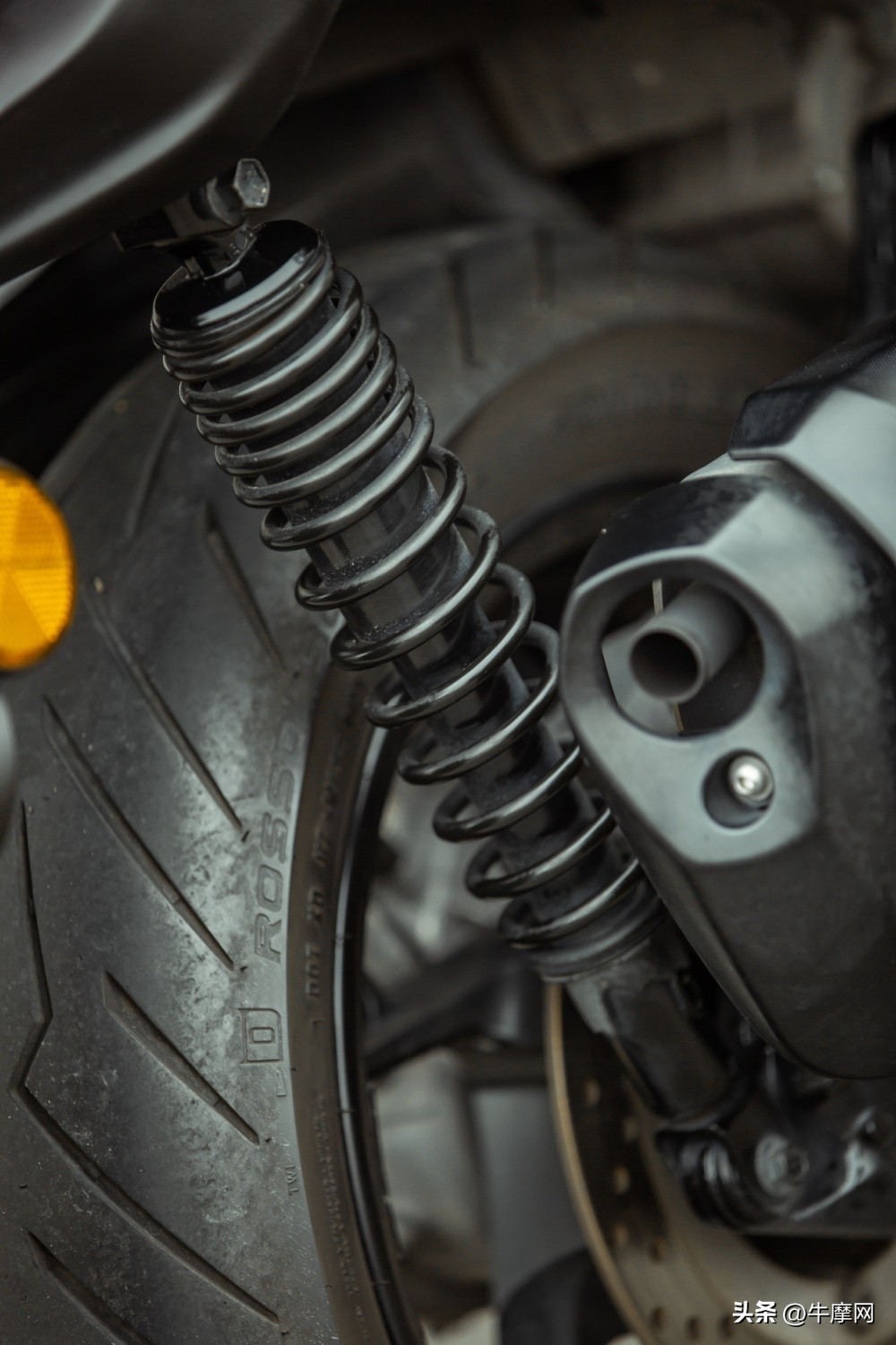 减震方面,前减震采用两根33mm的不可调正置液压阻尼减震,后减震采用一对5段预载可调的弹簧阻尼减震。静态双人乘坐情况时,下压的状态比较明显。单从静态来看,下压的表现并不算上乘。
