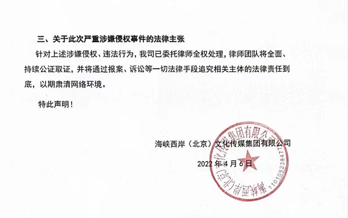 随后,龚俊工作室发声明,称关于网传“唐筛”、“白马会所”等内容严重失实,“唐筛”及“辱骂其他艺人”等内容并非龚俊本人发布;“白马会所”是恶意造谣;龚俊目前单身无孩子,“此次事件我们必将诉诸法律,追究到底!”