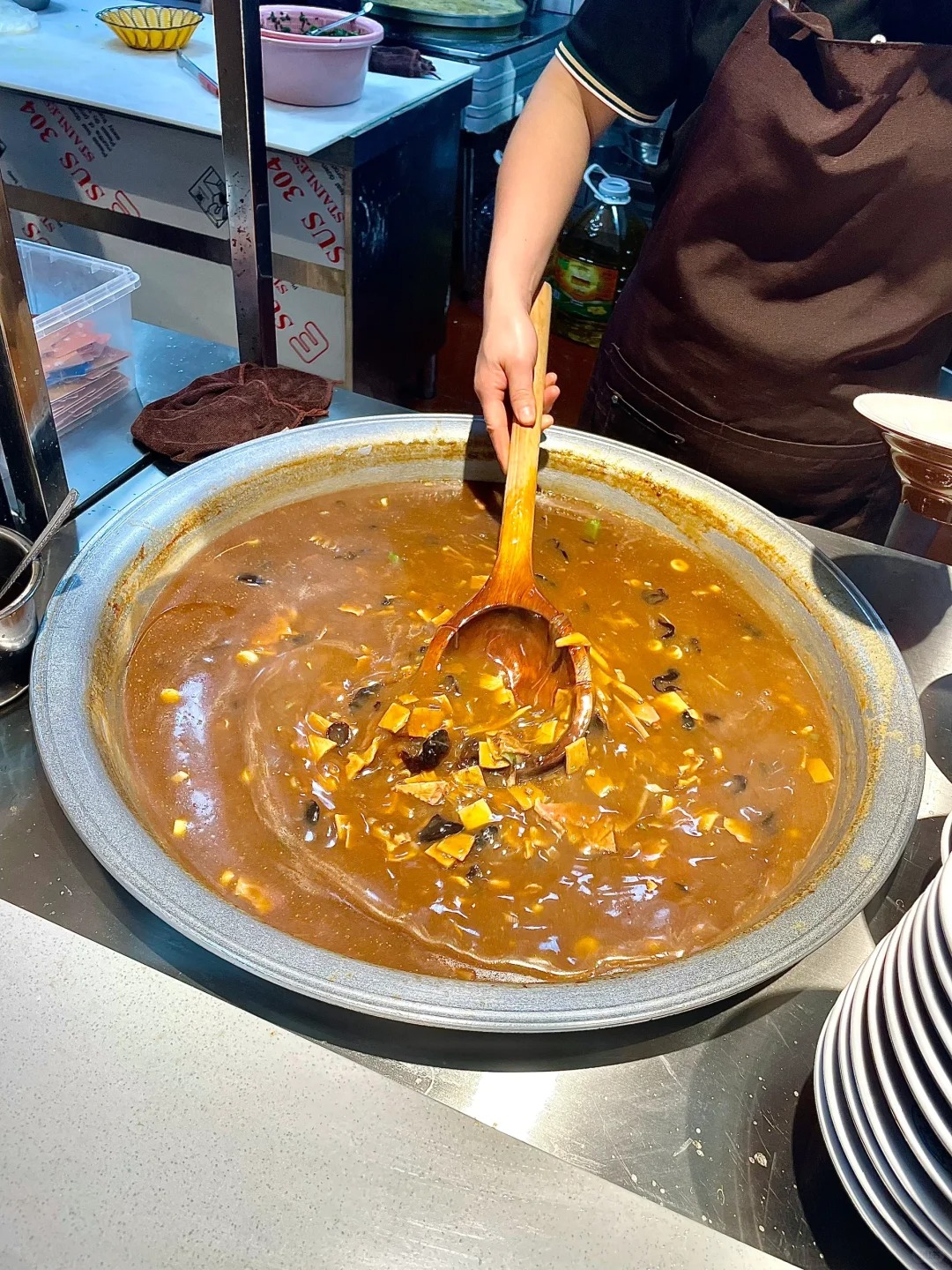 可咱河南人就对这酸溜溜的味道情有独钟,觉得咸香可口,越吃越上瘾,回味无穷。但在外地餐馆,浆面条就跟 “稀有动物” 似的,难得一见。