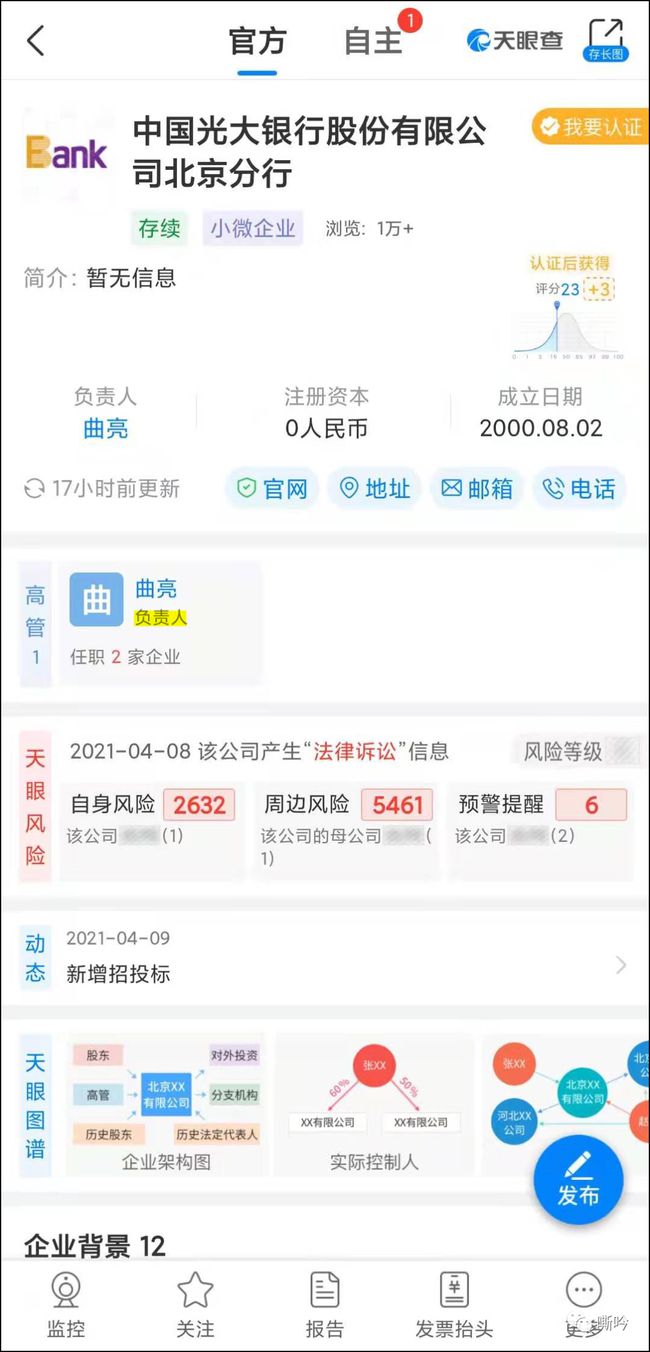 只是这个公示系统查询很慢、查询不智能(同样查询“光大银行北京分行”无结果)、详情页没有关联整合的信息。但权威性、准确性和时效性都是有保证的,可以直接作为有效证据使用,而其他软件的查询结果:仅供参考。