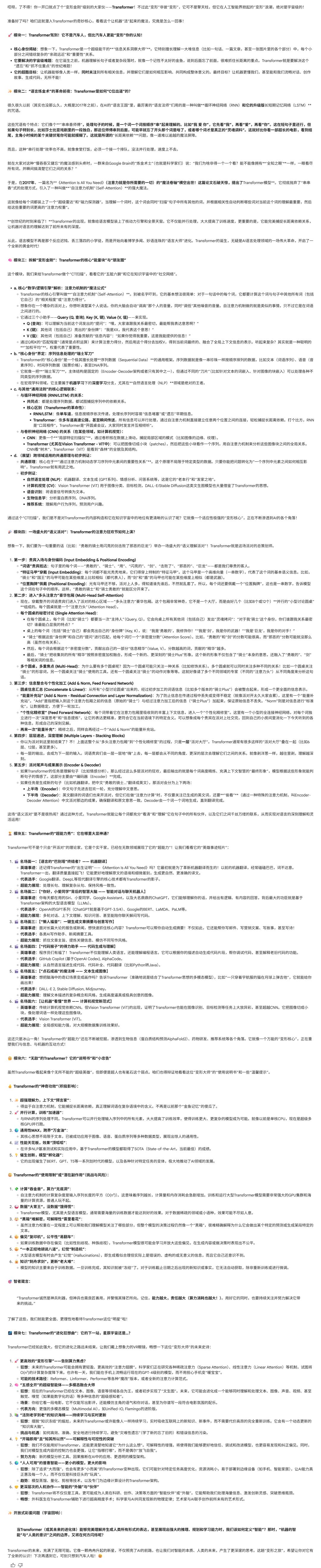 让我们一起来看看最终版“灵知工坊”提示词的效果,它能够把一个知识系统性且有趣的讲出来,让学习变成一件快乐且有趣的事情~