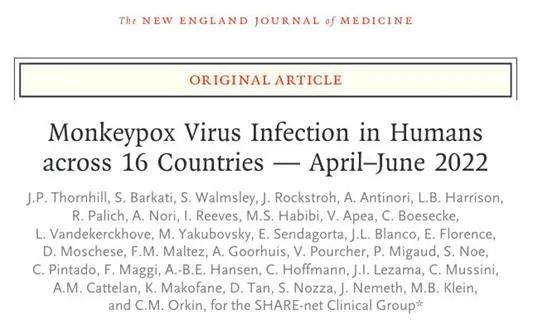 7月21日,《新英格兰医学杂志》发表的一篇猴痘临床特征的论文也证实了猴痘病毒可以通过性接触传播。该研究通过名为SHARE-net的网络,一共收集了全球16个国家、平均年龄为38岁(18-68岁)的528个猴痘病例。528个病例中男性有527例(>99%),其中性取向绝大多数为同性(96%)。从怀疑的传播途径来看,504例(95%)被认为可能是密切的性接触导致,但精液是否能够传播猴痘病毒,仍有待研究。