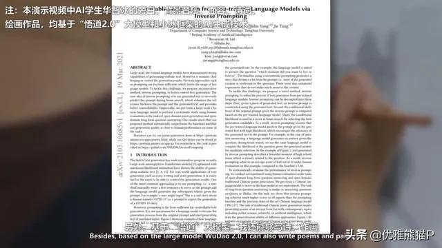 注:本演示视频中AI学生华智冰的旁白、背景音乐、面容、诗词、绘画作品,均基于“悟道2.0”大模型和小冰框架的AI生成技术。