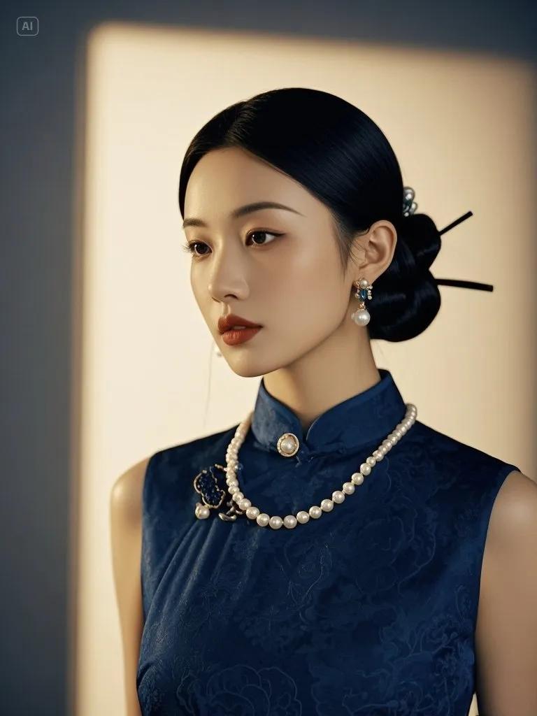 旗袍不是万能的华服,正如昆曲不宜在广场演出。正式场合当选织锦缎配点翠头面,日常便服可选棉麻混纺搭素色软缎。犹记宋女士接见外宾时,总在旗袍外罩件素色披肩,既守传统又显从容。