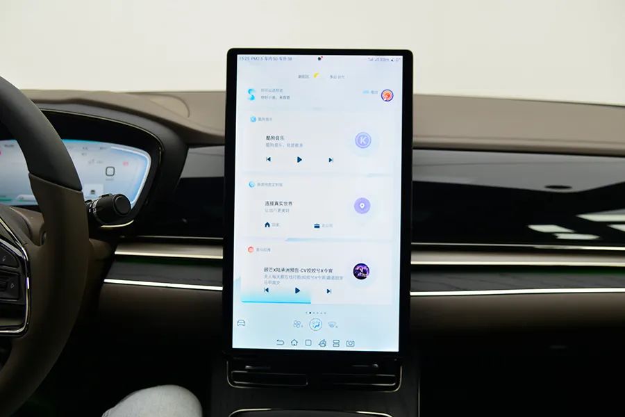 中控屏是一块15.6英寸可旋转液晶屏,基于安卓系统开发,可以安装安卓APP。使用逻辑和操作方式与之前的比亚迪如出一辙,屏幕能够90度旋转。车机系统进了一定的优化,现在不会自动旋转屏幕,而是需要手动控制,但开车能够播放视频的问题并没有得到解决。