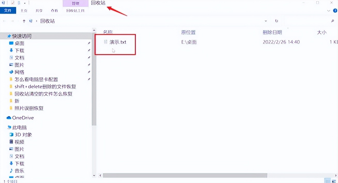 有时候我们可能会不小心删除掉文件,那么这时候文件去哪里了呢?删除掉的文件会进入到回收站,打开回收站就可以看到刚刚删掉的文件。