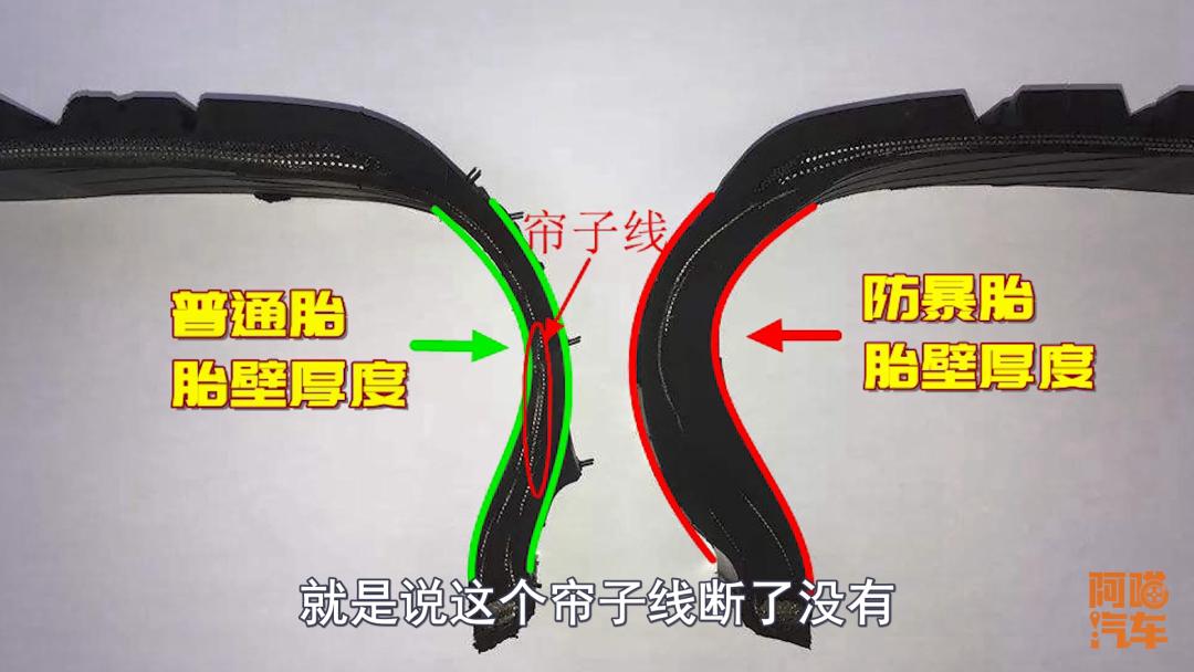 但实际上,并非如此,轮胎是多层复合橡胶,而且轮胎的胎壁不仅有橡胶,而且有一层很重要的支撑层和加强层,我们称之为帘布层,也就是帘子线。它是用来保证整个这一块轮胎侧壁结构不变形的,也就是有了这层帘布层之后,能极大地增加轮胎侧壁橡胶的强度,让它不至于出现鼓包变形或者直接出现炸裂的情况。