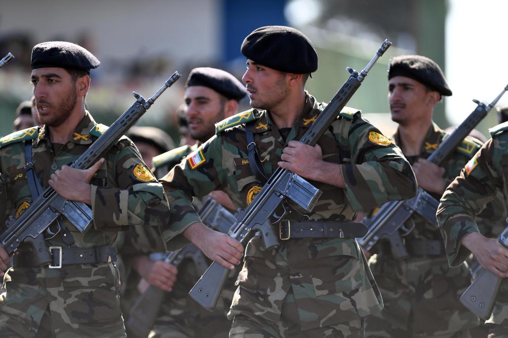 2025年4月18日,在伊朗首都德黑兰,士兵们在阅兵式上列队行进。伊朗18日举行建军节阅兵式。新华社记者 沙达提 摄