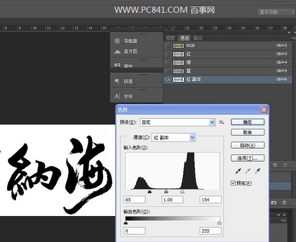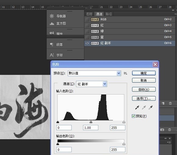 5.调整色阶直至图片黑白对比强烈,如下图: