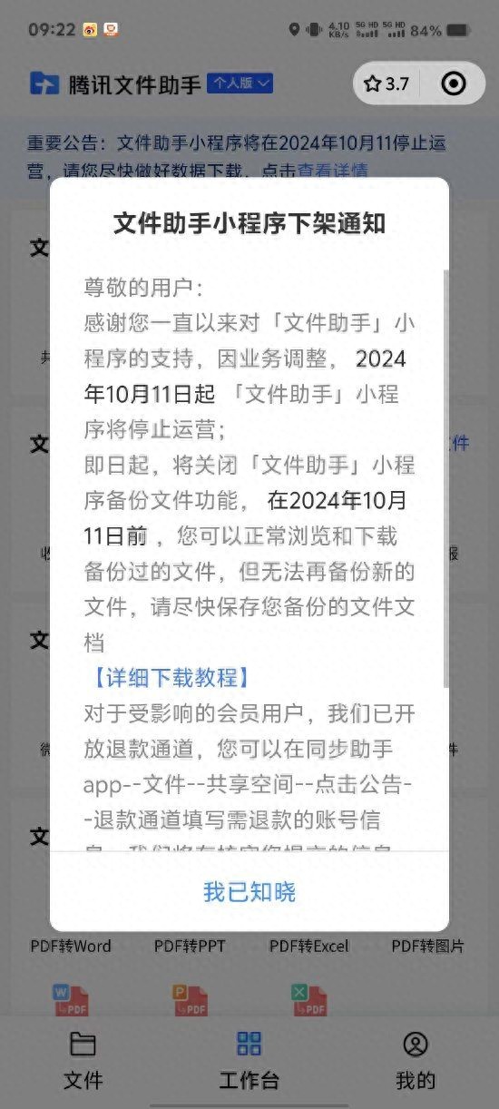 腾讯文件助手小程序将停止运营,退款通道已开放