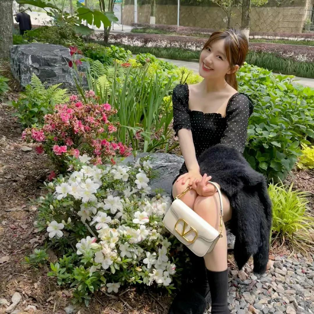 赵露思日常随拍,中筒袜搭配黑色鞋子很有个性