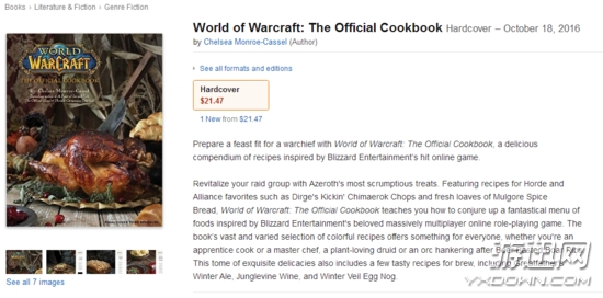 暴雪授权,由Chelsea Monroe-Cassel编写的《魔兽世界》官方食谱即将于10月18日在亚马逊开卖,售价21.47美元。《WOW》里形形色色的食物到底什么味道?这本书或许能告诉你。如果你对此感兴趣,可以预购。