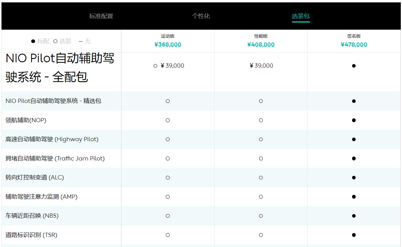 至于“NIO Pilot全配包”,则会新增“自动辅助导航驾驶(NOP)”功能,同时原“全自动泊车系统”功能升级为“视觉融合全自动泊车系统”。其余功能保持不变,价格也仍是39000元。