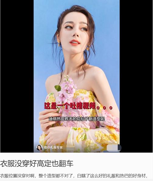 该造型师认为迪丽热巴把衣服提得太高,导致裙子的实际腰线来到了胸下面,胸部位置的礼服版型也被穿毁了,完全没有了模特在秀场上展示时的美感。