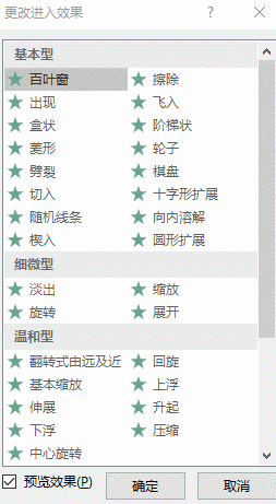 虽然有这么多动画供我们选择,但是在日常制作PPT时,我们并不会用到全部动画效果。