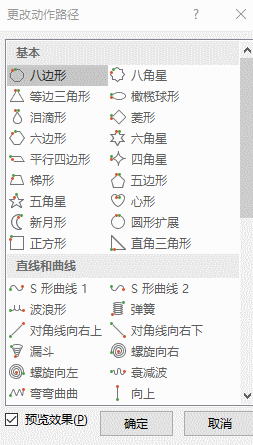 具体如动作路径栏中:梯形路径、弹簧路径、向上路径、向左/右路径,十字形扩展路径等路径动画。