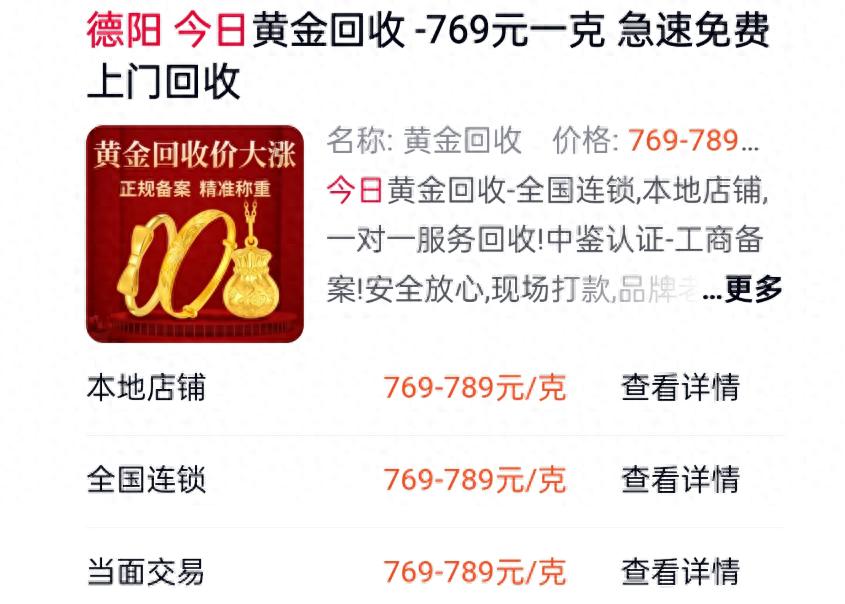 3月31日上午,德阳李先生在网络平台搜索当日金价时,一则广告出现在手机屏幕,上面显示“德阳今日黄金回收769元一克 急速免费上门回收”,想到自己有一个金手镯与金项链准备出售,于是李先生就联系了该商家。