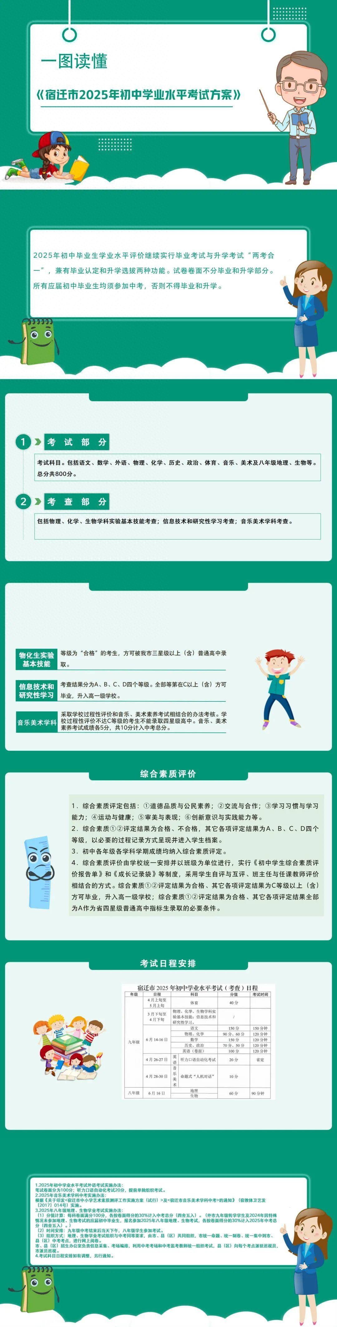 日前,宿迁市教育局印发《宿迁市2025年初中学业水平考试方案》。一起来看——