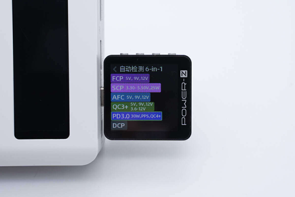 使用ChargerLAB POWER-Z KM003C测得USB-C口支持FCP、SCP、AFC、QC3+/4+、PD3.0、PPS、DCP充电协议。