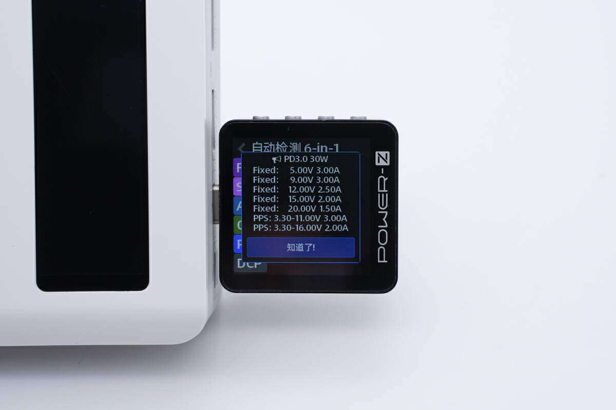 并且具备5V3A、9V3A、12V2.5A、15V2A、20V1.5A五组固定电压档位,以及3.3-11V3A和3.3-16V2A两组PPS电压档位。