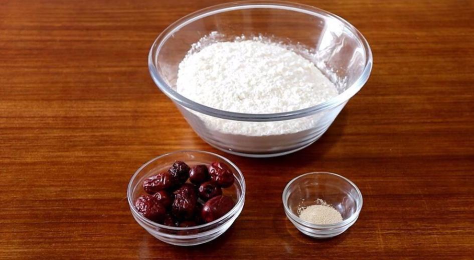 准备食材:面粉、红枣、酵母、白糖、水