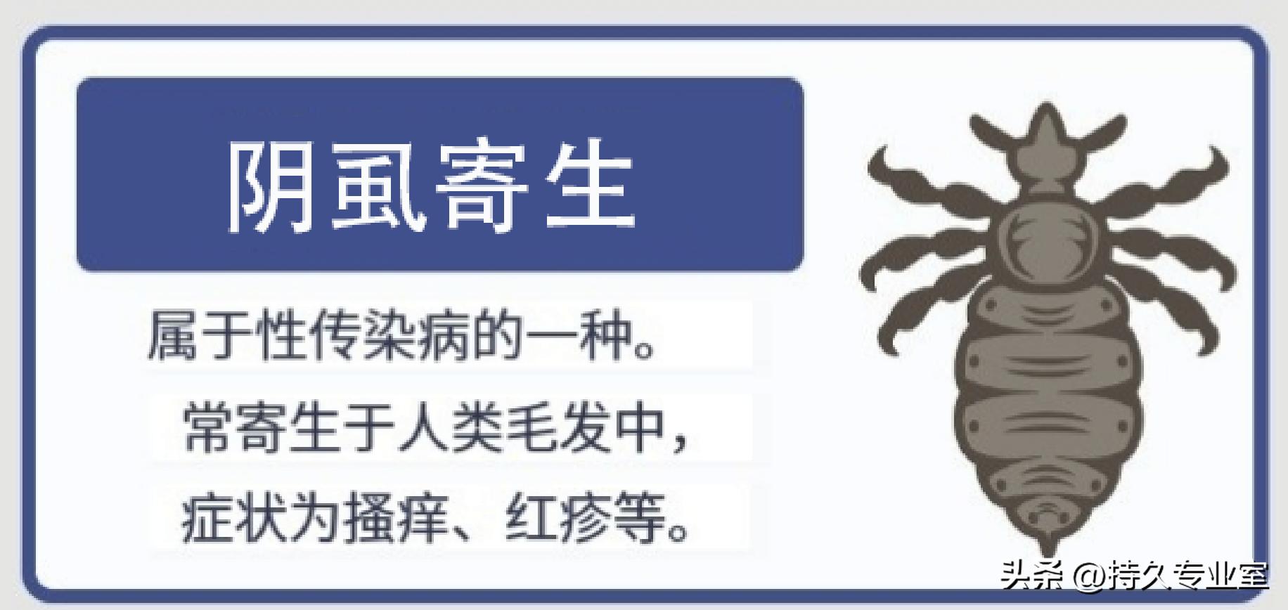 5. 阴虱寄生。阴虱属于性传染病的一种。常寄生于人类的毛发中,常见的临床症状为阴部搔痒、红疹,与被阴虱叮咬后留下的血点。程威铭医师指出,治疗该疾病时,会先将患者的阴部毛发剃除,再用灭虱药膏加以杀虫。