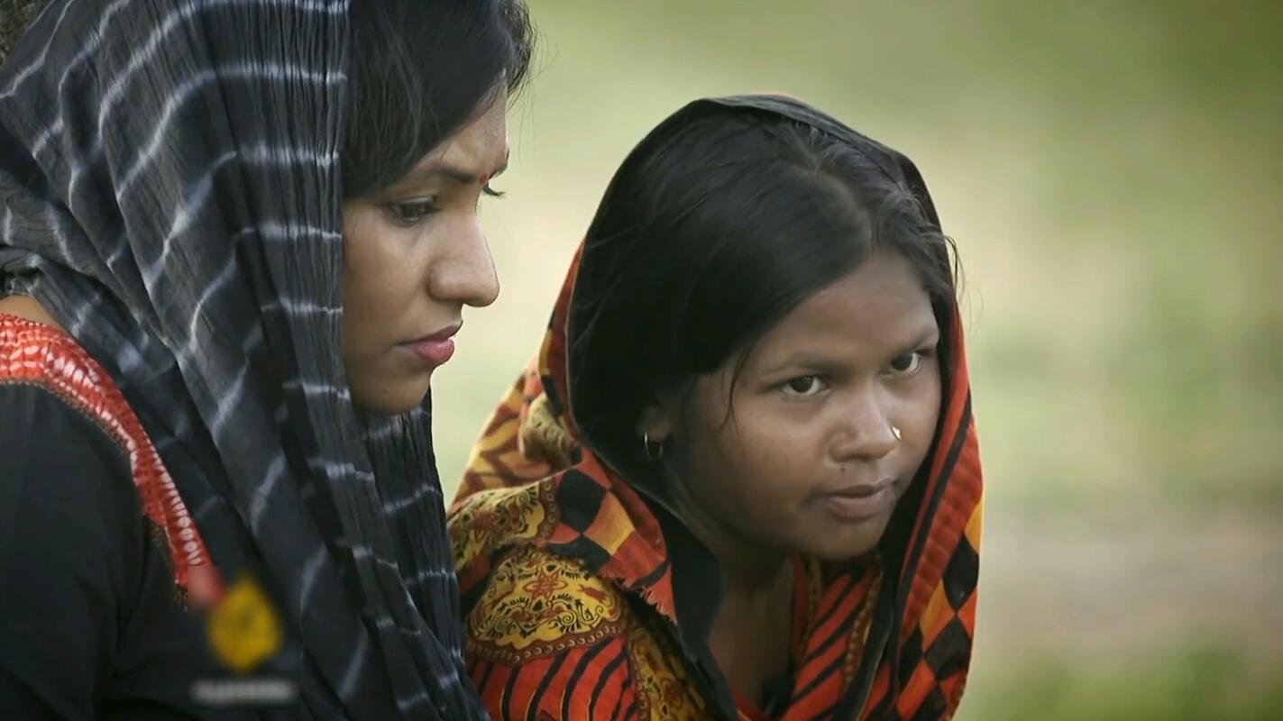 此时在孟加拉国的另一个偏远的村庄,只有13岁的女孩达莎,她被迫在去年结婚,并且被要求不能在外面随便跟别人讲话,在摄制组大量的说服工作后,她的丈夫允许她跟着女记者一起出去聊聊天。