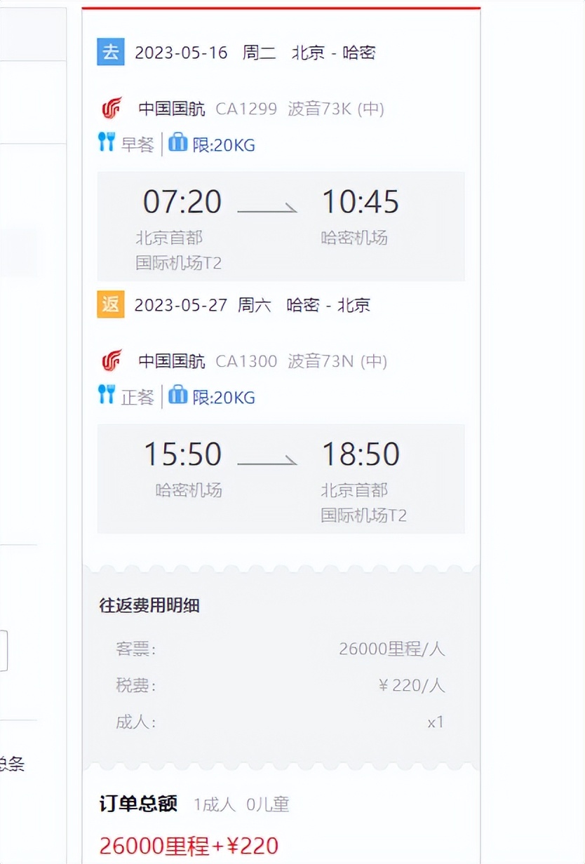 作为新疆的东大门,北京到哈密这条航线单程1.5万里程就能换,往返只需要2.6万。