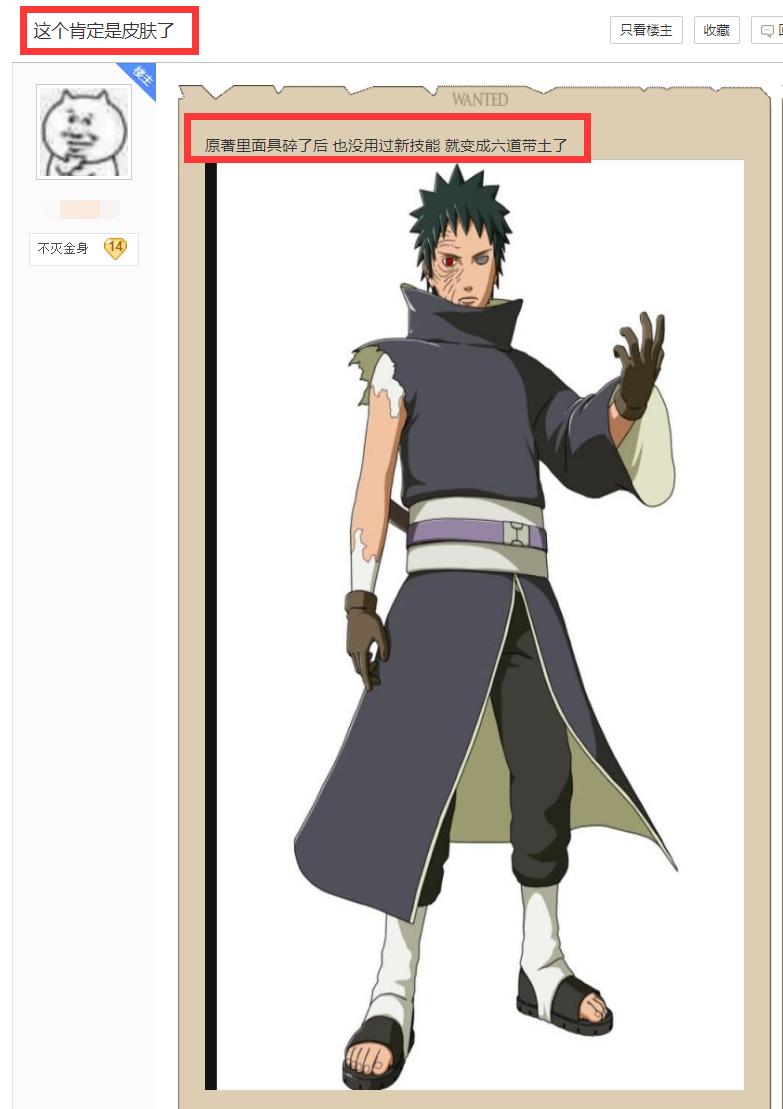有些忍者的形态可能存在技能重合性比较高,做成时装来再次发挥价值这个是可以理解的,但破面带土跟白面具时期如此明显的改动,技能、奥义、声优的改变等等,都预示着他不会以一个时装来亮相。不太明白这类的想法是根据什么观点得出来的,而且似乎不止一个玩家都这么说,要不就是时装,要不就是白面具被打以后变成破面的效果,不要只看游戏设定,还是需要多去参考一下其他方面的因素。
