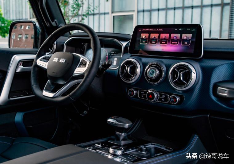 之所以推荐BJ40城市猎人版,除了车主能够带它去越野之外,还要考量到日常使用的舒适性,在配置方面,BJ40城市猎人版配有倒车影像、定速巡航、运动/舒适/节能/雪地四种驾驶模式、自动驻车、上坡辅助、陡坡缓降、无钥匙启动、多功能方向盘、内置行车记录仪、12.3英寸全液晶仪表盘、10英寸触摸液晶屏、GPS导航、手机互联、语音控制、车联网、LED大灯、后排出风口和温度分区控制,后排座椅靠背可以进行调节。如果对比同价位的国产SUV,BJ40城市猎人版的配置并不丰富,甚至可以用“寒酸”二字形容,但是从硬派越野车的角度出发,能够保证日常代步的基本舒适性。