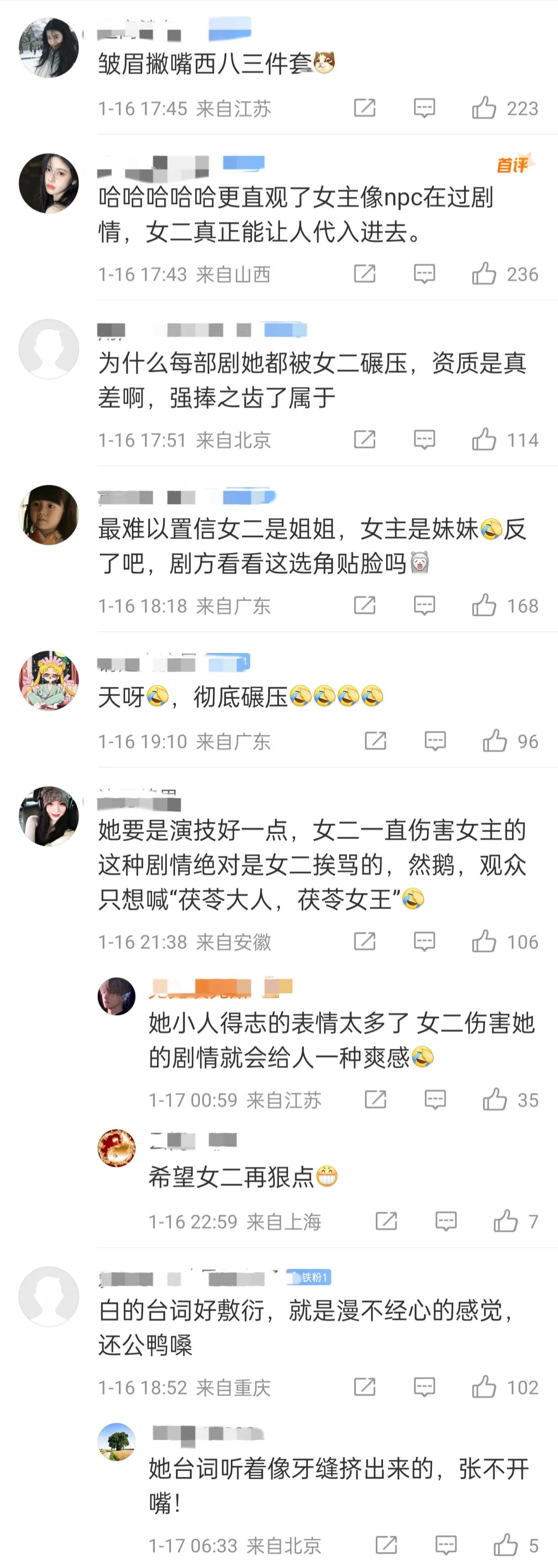 反而白鹿在剧里的表现就没那么令人满意了,表演生气只会大声嘶吼加上瞪眼,哭戏时也只会扯着嗓子大声嘶吼,令很多观众无法入戏。