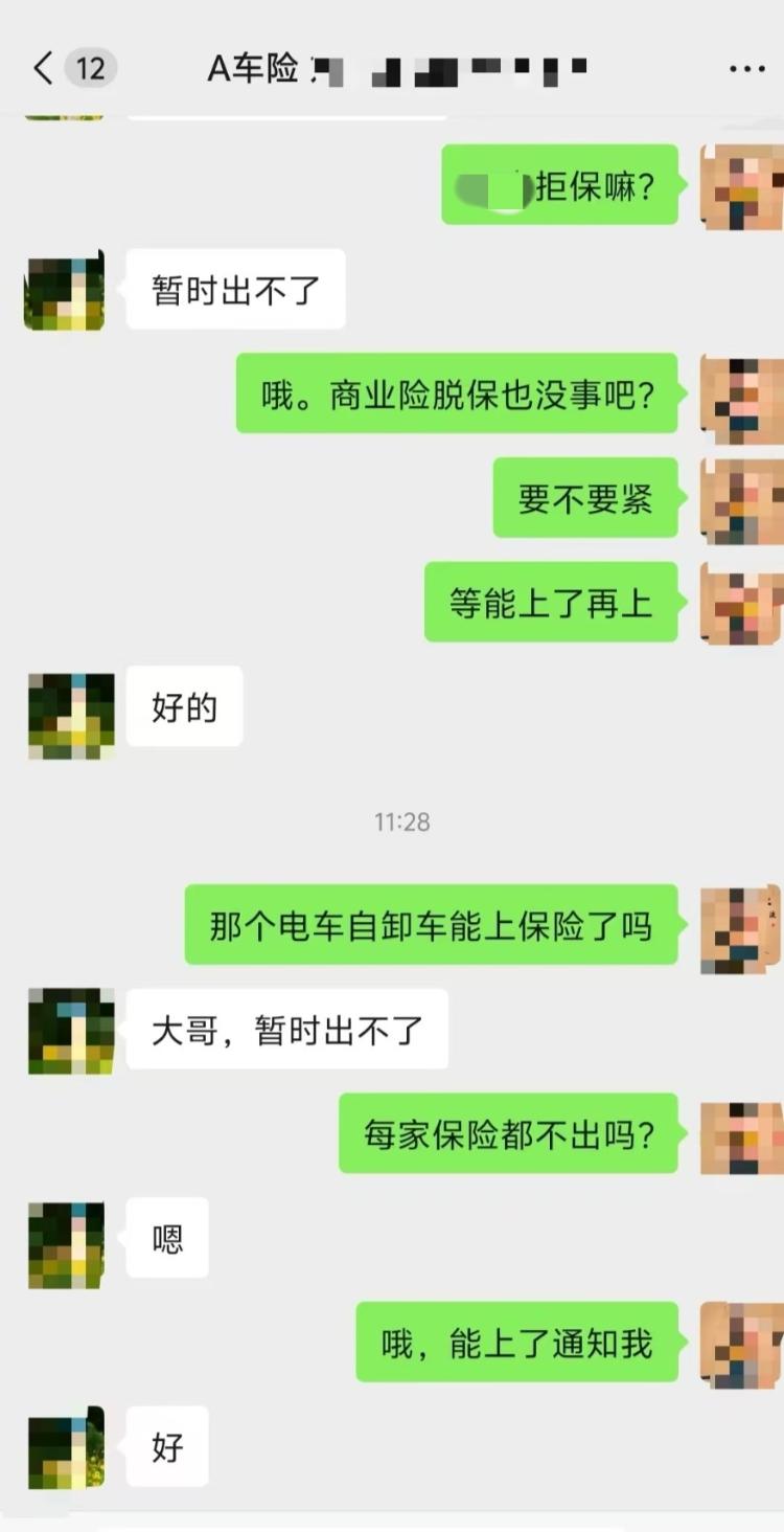 “今年上半年,我还帮一位客户在某保险公司成功上了商业险,后来再给其他客户上就不行了,人家直接就告诉我们这类车的评分不行,评分不行在业内是指赔付率高。前几天我又帮一位客户去问了几家公司,人家一看是新能源货车,尤其是带商业险,直接拒保了。”周敏说。