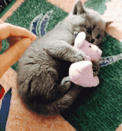 如果猫咪觉得你对它威胁的话,那么猫咪会抱着你的手又咬又蹬,这是猫咪进攻的表现。猫咪通常都是这样跟对方打架的。