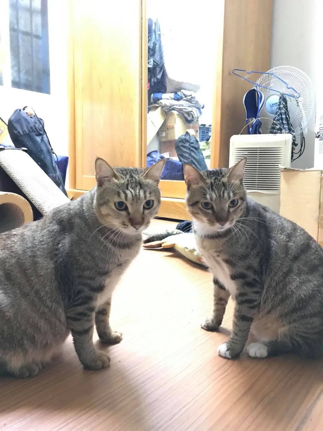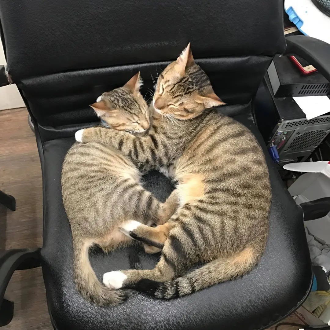 网友4年前领养了一对流浪猫,原本以为是一个妈生的,应该差不了多少,没想到后来这两只猫的体型差距却越变越大!