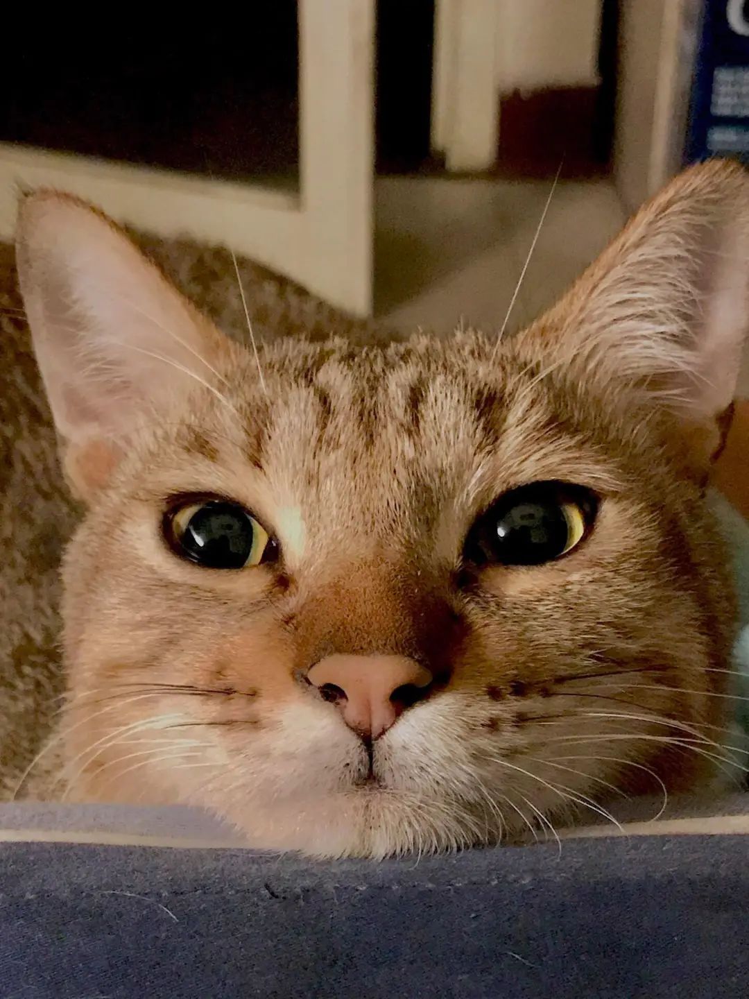 这只猫小时候还扭伤过,主人带去看医生的时候还随口提了一句:这只猫骨架有点大啊!主人当时也没有特别在意,没想到这家伙现在却长成这个样子,简直就是喵界的巨石强森啊!