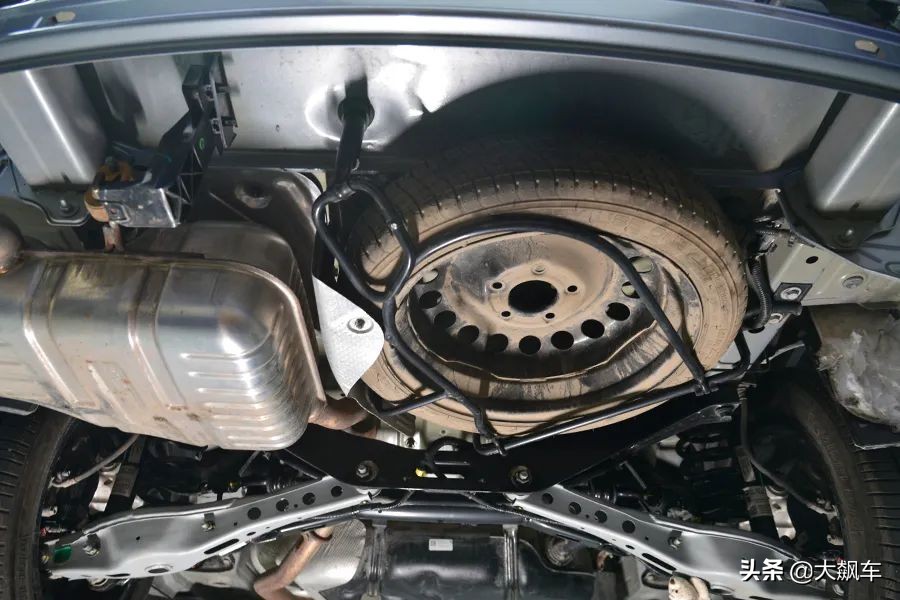 备胎吊在车尾底部,车内可以腾出更大的空间来安置第三排座位。