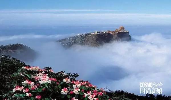 峨眉山是中国“四大佛教名山”之一,地势陡峭,风景秀丽,素有“峨眉天下秀”之称。古有《峨眉郡志》,“云鬘凝翠,鬒黛遥妆,真如螓首蛾眉,细而长,美而艳也,故名峨眉山”。成婚于“天堂之地”,实乃人生一幸。