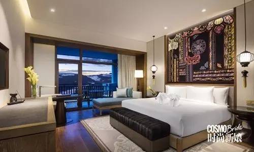 酒店的客房设计独到别致,将豪华的设施与充满当地文化特色的细节完美结合,赋予房间吉祥的中式寓意。而从宽敞的阳台向外望,便可领略令人惊叹的群山美景。