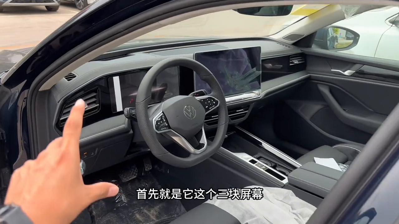 →首先就是三块屏幕,大众最新的内饰设计语言,这块中控车机屏幕15英寸也是2K的分辨率显示,匹配了8155芯片,所以在当下20多万燃油车型里车机是一个亮点。