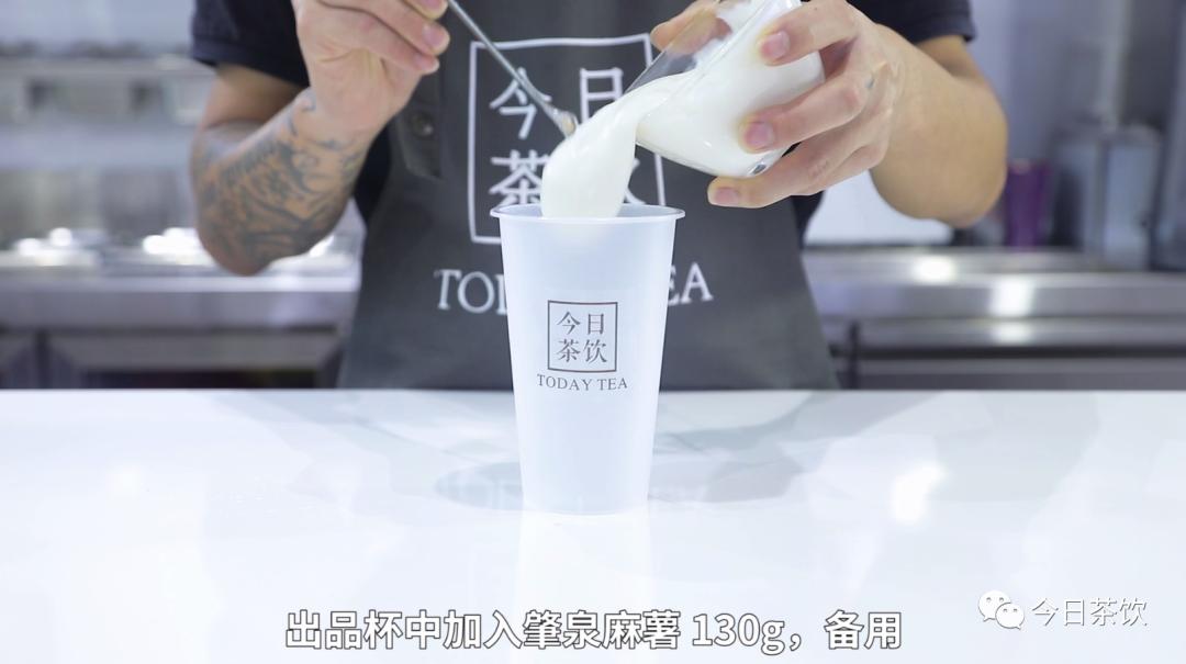 01.出品杯中加入肇泉麻薯130g,备用。