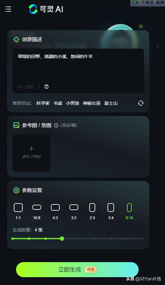选取生成内容中的文字描述去可灵生成图片